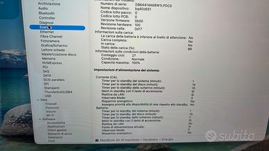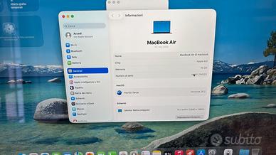 Prodotti Ex Uso Dimostrativo Pari al nuovo usato solo per dimostrazione. Modello: MacBook Air (15 pollici, M3, 2024) Tipo di processore: -Chip: Chip Apple M3, CPU 8‑core con 4 performance core e 4 efficiency core,GPU 8-core, GPU 10-core Memoria RAM: Memoria: 16GB di memoria unificata Memoria interna: Unità SSD da 256GB Schermo: Display Liquid Retina,Display retroilluminato LED da 15,3″ (diagonale) con tecnologia IPS;1 risoluzione nativa 2560×1664 a 224 pixel per pollice Tastiera: Magic Keyboard retroilluminata con 79 tasti, compresi 12 tasti funzione a tutta altezza e 4 tasti freccia (disposti a T capovolta) Touch ID Sensore di luce ambientale Trackpad Force Touch per un controllo preciso del cursore, e per abilitare diverse funzioni a seconda della pressione esercitata: clic prolungato, accelerazioni, tratto del disegno variabile in base alla pressione, gesti Multi‑Touch Connettività: Connessione in rete Wi‑Fi 6E (802.11ax) – Bluetooth 5.3 Porte ed Espansione: Ricarica ed espansione: Porta MagSafe 3 per la ricarica,Jack cuffie da 3,5 mm, Due porte Thunderbolt / USB 4 per: -ricarica-DisplayPort -Thunderbolt 3 (fino a 40 Gbps) -USB 4 (fino a 40 Gbps) Cosa c’è dentro? MacBook Air 15″ M3, Cavo da USB‑C a MagSafe 3 (2 m) Scatola Neutra Garanzia Offriamo 12 mesi di garanzia