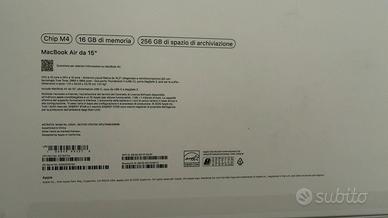 Originale Apple MC7A4T/A Model No. A3241, MacBook Air 15 16 Gb Memoria Unificata 256 Gb SSD OSX 26