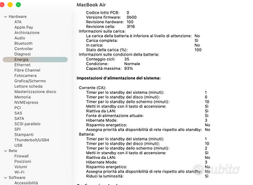 Vendo MacBook Air 15" con chip Apple M4, configurazione top da 24GB di memoria unificata e 512GB di SSD. Regalatomi ad aprile 2025, utilizzato pochissimo e sempre in ufficio – mai trasportato o usato fuori casa. 📋 SPECIFICHE • Schermo: Liquid Retina 15,3" – 2.880 x 1.864 px • Chip: Apple M4 – CPU 10-core / GPU 10-core • RAM: 24GB memoria unificata • Storage: 512GB SSD • Sistema operativo: macOS aggiornato 🔋 STATO BATTERIA (verificabile prima dell'acquisto) • Cicli di ricarica: 35 su 1.000 • Capacità massima: 93% • Batteria praticamente nuova 🛡️ APPLECARE+ INCLUSO • Garanzia Apple attiva fino al 10 aprile 2028 • Copre: protezione contro danni accidentali, servizio on site, accesso prioritario • Trasferibile all'acquirente ✅ CONDIZIONI • Esteticamente perfetto – zero graffi, zero ammaccature • Sempre utilizzato su scrivania, mai trasportato • Funzionante al 100% • Completo di scatola originale e accessori Apple 💶 Prezzo: 1.450€ Disponibile per visione e verifica prima dell'acquisto. Preferisco vendita a mano in zona, ma valuto spedizione con corriere tracciato a carico dell'acquirente. Non rispondo a offerte irrisorie.