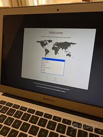 MacBook Air 2017, schermo di 13 pollici, con alimentatore e il suo cavo incluso. Processore: Intel Core i5 dual-core a 1,8GHz (Turbo Boost fino a 2,9GHz) con 3MB di cache L3 condivisa (configurabile con Intel Core i7 dual-core a 2,2GHz). Archiviazione: SSD PCle da 128GB (configurabile con unità SSD da 256GB o 512GB. Memoria: 8GB di memoria LPDDR3 a 1600MHz su scheda. Grafica: Intel HD Graphics 6000 Videocamera: FaceTime HD a 720p Ricarica ed espansione: Due porte USB 3 (fino a 5 Gbps), Porta Thunderbolt 2 (fino a 20 Gbps), Porta per alimentatore MagSafe 2, Slot SDXC card. Audio: Altoparlanti stereo, due microfoni, Jack da 3,5mm per cuffie. Tastiera: QWERTY