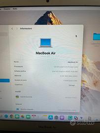 Vendo Macbook air2017 8 GB ram SSD 250, patch MacOs Sonoma, perfettamente funzionante, aplicati adesivi tastiera in italiano, utilizzato giornalmente come muletto. Batteria dura un'ora circa. SOLO SPEDIZIONI NO RITIRO A MANO NO SCAMBI