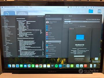 Vendo MacBook Air 13” 2018 in buone condizioni generali e perfettamente funzionante. Specifiche: 16 GB RAM 256 GB SSD Batteria con 608 cicli Stato batteria: normale Il PC non ha ammaccature, presenta solo lievi segni di usura dovuti al normale utilizzo. Ottimo per navigazione, studio, lavoro d’ufficio e utilizzo quotidiano. Vendo per passaggio a nuovo dispositivo. Disponibile per ulteriori informazioni o foto.