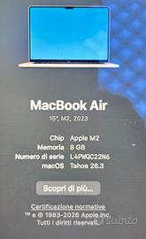 SOLO RITIRO IN ZONA - PAGAMENTO IN CONTANTI 15", M2, 2023 Laptop funzionante - schermo danneggiato, si spegne una volta aperto lo sportello.