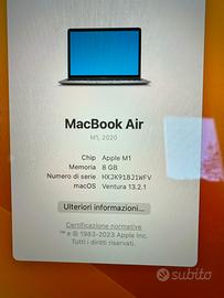 Vendo MacBook Air 2023 con HD 256 GB cip M1 usato pochissimo. Spedisco in tutta Italia oppure consegna a mano a Parma e provincia.