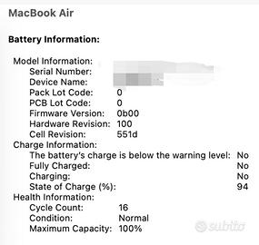 Vendo MacBook Air 2025 con chip M4, in condizioni pari al nuovo. Utilizzato pochissimo, sempre tenuto con estrema cura. Perfette Condizioni • Nessun graffio o segno evidente • Perfettamente funzionante • Batteria in stato eccellente • Scatola originale Apple • Accessori originali (caricatore e cavo) • Imballo completo come da negozio • Chip Apple M4 (super veloce e fluido) Design sottile e leggerissimo Display luminoso e definito Pertetto per studio, lavoro e uso quotidiano