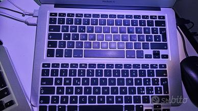 Vendo ottimo Macbook Air modello A1466, il più longevo degli Air prodotti da Apple. Affidabile e robusto, lo vendo completo di scatola e caricatore originale. La batteria garantisce un uso di 2 ore. Veloce e Funzionante in tutto. Acquistato in Germania con tastiera tedesca, ma lo fornisco con tastiera Italiana in silicone che si poggia direttamente. Ottimo per chi si vuole affacciare al mondo dei Mac e non ha esigenze particolari di lavoro. Molto indicato per gli studenti. Monta ssd da 140gb. Consegna a mano su Bari. Spedizione a carico dell'acquirente.