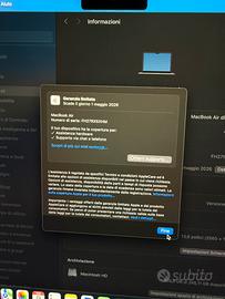 Vendo MacBook Air con processore Apple M2, schermo 13,6 pollici, 16GB di RAM e