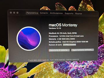 MacBook early 2015 ssd 128 gb Ram 4 gb Processore Intel i5 macOS Monterey Batteria discreta