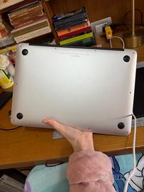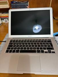 MacBook Air i5, perfettamente funzionante, inizializzato, anno di produzione: inizio 2014, RAM 4 giga, memoria 128 giga. Danneggiato esternamente ai lati.