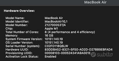 MacBook Air M1 del 2020, con scatola e accessori originali in ottime condizioni, ideale per per fluidità nel multitasking e softwer medio/pesanti (es. Autocad).
