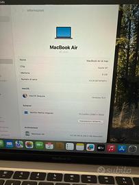 Vendo MacBook Air M1 (2020), perfettamente funzionante. Dotato di chip Apple M1 e 8GB di RAM e 256GB di MEMORIA, veloce e fluido per lavoro, studio e uso quotidiano. Display nitido, ottima autonomia della batteria e prestazioni affidabili. Sistema aggiornato e pronto all’uso. Ideale per chi cerca un portatile leggero, veloce e pratico. RITIRO DI PERSONA!
