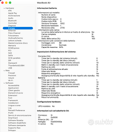 Vendo MacBook Air M1, 8 GB RAM, 512 GB SSD, con alimentatore e imballaggio Apple, originali. Stato batteria: normale (94%), numero cicli batteria: 86 (usato pochissimo). Condizioni pari al nuovo, nessun segno di usura, graffi, ecc. Ho applicato fin da subito una pellicola protettiva allo schermo e una cover. Aggiornato a Tahoe. Astenersi perditempo. Preferirei non spedire, ritiro a mano zona Correggio (RE).
