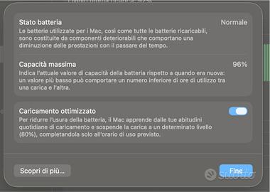 Batteria in stato eccellente (96% di capacità).