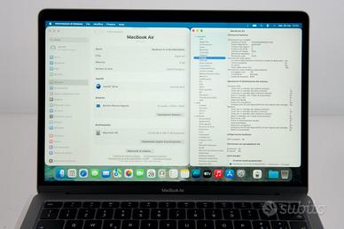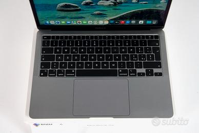 Sono un rivenditore, emetto regolare fattura di vendita IVA 22% per i possessori di partita IVA, equivalente scontrino per acquirente privato garanzia 3 mesi batteria esclusa PREZZO NON TRATTABILE Macbook Mac Air 13,3 pollici Anno 2020 CPU Apple M1 8 GB Ram Hard disk SSD da 256 Gb schermo perfetto senza segni, graffi e pixel danneggiati batteria con 197 cicli di ricarica stato 84% angoli e bordi perfetti schermo da 13,3 pollici 2560x1600 colore Space Gray completo di scatola, alimentatore e cavo originali nessuna parte sostituita nessuna riparazione fatta perfettamente funzionate esteticamente perfetto