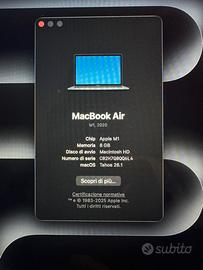 Vendo MacBook M1 8 GB 256 SSD comprato nuovo presso rivenditore ufficiale Apple C&C di Udine ad agosto 2022. Condizioni da negozio, perfettamente funzionante e aggiornato a ultima release. Vendo per inutilizzo, in quanto passato a Pc Windows. Usato principalmente per gestire documenti, guardare film e attività quotidiane. Cedo scontrino di acquisto, scatola e caricatore originali, più custodia dedicata ufficiale Apple del valore di 55€. Prezzo leggermente trattabile. NON RISPONDO A PROPOSTE NON SERIE