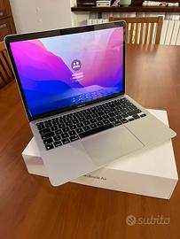 Vendo macbook air M1 2020 256gb in perfette condizioni senza nessun difetto estetico ne funzionale… Insieme cedo anche il caricatore originale e la scatola Prezzo 500.