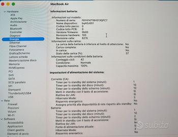 Vendo MacBook Air con chip Apple M2, colore Argento, memoria SSD 256 e 8GB di RAM. Il computer è stato utilizzato sempre con la massima attenzione ed è pari al nuovo: nessun segno di usura o graffi, perfettamente conservato. Dal punto di vista tecnico: • Chip Apple M2 • 8GB RAM • SSD 256GB • Display Retina 13" • Dotato di caricatore e scatola originale 🔋Batteria 42 cicli (capacità massima 100%) Vendo per passaggio a modello successivo. CONSEGNA SOLO A MANO.