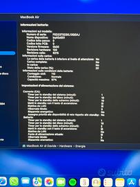 Vendo bellissimo Macbook Air M2 del 2022 da 8Gb di RAM e 256Gb di SSD, colore Gold. Esteticamente perfetto, nessun graffio evidente, nessun segno di usura come si evince anche da foto, giusto qualche segno di normale utilizzo che viene difficile perfino fotografare. Batteria al 97% con 110 cicli. Causa utilizzo in ufficio vendo privo di scatola originale, e con alimentatore pari originale.