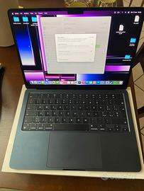 Vendo MacBook Air da 256gb colorazione Midnightblue con chip m2, il computer è stato usato pochissimo e soprattutto sempre con cura infatti la batteria è ancora al 99% Prezzo leggermente trattabile