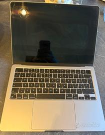 Vendo MacBook Air M2 13,6” con 8GB di memoria unificata e unità SSD da 256GB. Pochi cicli di ricarica ed utilizzato poco. Grigio siderale Chip Apple M2 CPU 8‑core con 4 performance core e 4 efficiency core GPU 8‑core Neural Engine 16‑core 100 GBps di banda di memoria Configurabile con M2 con CPU 8‑core e GPU 10‑core Media engine H.264, HEVC, ProRes e ProRes RAW con accelerazione hardware Motore di decodifica video Motore di codifica video Motore di codifica e decodifica ProRes Display Liquid Retina Display retroilluminato LED da 13,6" (diagonale) con tecnologia IPS;1 risoluzione nativa 2560×1664 a 224 pixel per pollice Luminosità 500 nit Memoria 8GB di memoria unificata Archiviazione Unità SSD da 256GB