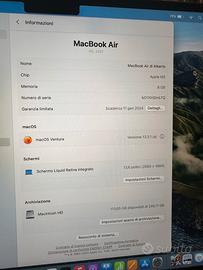 Vendi macbook air m2 del 2023 in perfette condizioni Memoria 8 GB archiviazione 266 GB