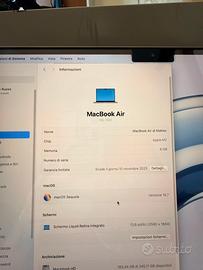 Vendo MacBook Air M2 da 256 GB di archiviazione e 8 GB di RAM. Il computer è in condizioni perfette, utilizzato una decina di volte in totale. Batteria al 100%. Acquistato a novembre 2024, quindi ancora in garanzia. Completo di confezione originale e accessori Motivo della vendita: inutilizzo Scambio solo con ipad Per qualsiasi info non esitarmi a contattare.
