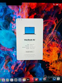 Vendo Macbook air M3 16gb RAM 256gb SSD. Tenuto maniacalmente, pari al nuovo. Batteria 95%. Schermo e tastiera sono perfetti e pulitissimi. Fornisco scatola e caricatore originale. Preferisco scambio a mano zona milano . Macbook air m3,macbook air ,MACBOOK AIR,m3