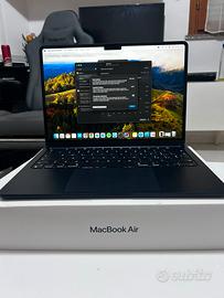 MacBook Air 13” con chip Apple M3 (2024), colore Mezzanotte (nero), 8GB RAM e 256GB SSD.