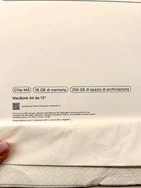 MacBook Air M4 13” 16GB 256GB NUOVO SIGILLATO –