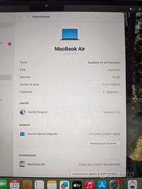 Vendo MacBook Air 13,6” (2025, chip Apple M4) in condizioni pari al nuovo, utilizzato pochissimo. 💻 Caratteristiche: Chip Apple M4 16GB RAM 256GB SSD Display Retina 13,6” macOS aggiornato 🔋 Batteria al 100% con soli 30 cicli (vedi foto) 🧾 Acquistato il 16/03/2026 – garanzia 24 mesi (fino al 16/03/2028) 📦 Completo di: Scatola originale Alimentatore originale Cavo originale 💎 Nessun difetto, perfettamente funzionante Vendo per inutilizzo Preferibile scambio a mano