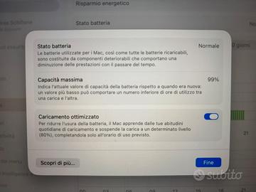 Vendo per inutilizzo MacBook Air usato poco. Cascato una volta ma perfettamente funzionante. Capacità massima 99%. SSD da 256 GB. Memoria unificata da 8 GB. Chip Apple M1