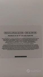 MacBook air13 m2 vendo per inutilizzo e passaggio a computer fisso ,e perfetto usato pochissimo memoria unificata 8gb,ssd256gb,viene venduto nella sua scatola originale