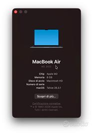 Vendo macbook Air M2 comprato nel 2022. Colorazione mezzanotte, trattato benissimo e senza un graffio. Vendo per passaggio a modello con più memoria. Carica batterie da 70W originale Apple. Cavo di ricarica magsafe della stessa colorazione del portatile. Tastiera retro illuminata, due porte usb c thunderbolt 4 e jack audio per cuffie.