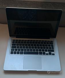 Vendo MacBook Pro "Unibody" (modello tecnico A1278, identificatore MacBookPro9,2), la celebre serie distribuita tra il 2012 e il 2016. Il computer è funzionante e il sistema esegue correttamente il boot, ma lo vendo esclusivamente per recupero parti di ricambio a causa di un difetto al display.