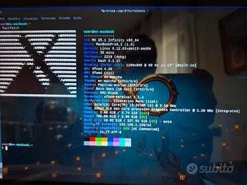Macbook pro 13" del 2012 in buone condizioni generali. CPU Intel Core i5-3210M @ 3.1GHz; Ram 4GB DDR3; HDD 320GB; Sistema Operativo MX Linux 25.1; Wi-Fi; Bluetooth; Tastiera retroilluminata; Alimentatore originale perfettamente funzionante; Lettore DVD NON funzionante; Batteria funzionante ma dura una quarantina di minuti; Qualche segno e ammaccatura. Dato che Apple non supporta più il modello e non è possibile aggiornarlo è ottimo ad uso ricambi o col sistema operativo installato. Prezzo Trattabile.