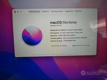 Macbook Pro 13 2015 i7 3.1 Ghz 16/512 GB