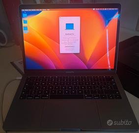 Vendo MacBook Pro 13 pollici – anno 2017, perfettamente funzionante e tenuto con cura. Caratteristiche principali: •Display: 13” •Processore: Intel Core i5 dual-core 2,3 GHz •RAM: 8 GB LPDDR3 2133 MHz •Grafica: Intel Iris Plus Graphics 640 (1536 MB) •Porte: 2 × Thunderbolt 3 (USB-C) •Sistema operativo: macOS Ventura 13.6.9