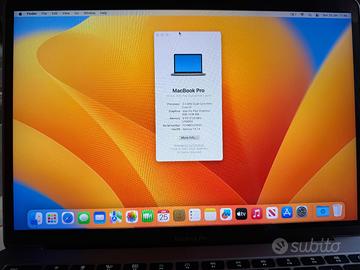 Vendo MacBook Pro 13” anno 2017, perfettamente funzionante e tenuto con cura. Processore: Intel core i5 dual core 2.3 GHz. Memoria ram 8GB. Sistema operativo macOS ventura 13.7.4. Tastiera e trackpad perfettamente funzionanti. Ottime caratteristiche estetiche e funzionali. Batteria in buono stato. Incluso al MacBook, scatola originale, e caricabatterie.