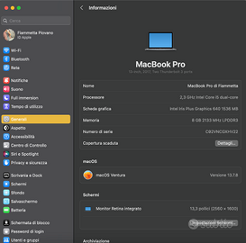 Vendo MacBook Pro 13" (2017) in ottime condizioni estetiche e funzionali.