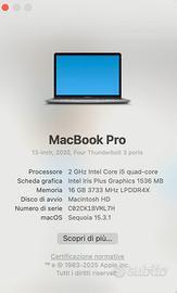 Colore space gray, mac con processore intel (non son mai passato ad apple silicon per problemi di compatibilità di programmi) molto performante (utilizzo giornalmente per sviluppare phyton, docker, java, c, c++, react, laravel) riesce a gestire senza problemi docker con sql, postegres, ambiente di sviluppo java, decine di tab aperti su più browser, suite office 365, vpn, desktop remoto… tutto insieme. In passato ho anche montato video con davinci resolve. Scritto musica con musescore e vari sistemi tipo latex.