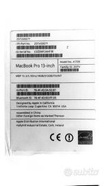 Vendo MacBook Pro 13" (modello A1706), non funzionante per problema alla scheda madre. È stato verificato da un centro assistenza che non arriva alimentazione alla scheda madre, quindi il dispositivo viene venduto come non funzionante, ideale per recupero di parti di ricambio.