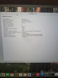 Vendo MacBook Pro 13" modello A2159 del 2019, 8GB RAM, 128GB SSD NVMe veloce, touchbar, 2 porte Thunderbolt 3, macOS Sequoia 15.7.3 (ultima versione ufficiale).