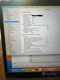 Archiviazione 256 gb Ram 8 gb Utilizzato poco ma nessun segno di usura! Come da foto la batteria ha avuto dolo 468 cicli di carica e viene segnalata dal sistema cone normale. Portatile acquistato nel 2019 e come si evince utilizzato poco. Completo di cavo e alimentatore originali oltre l’imballo. No perditempo. Preferisco vendere con consegna a mano. Se necessario posso fornire ulteriori foto.