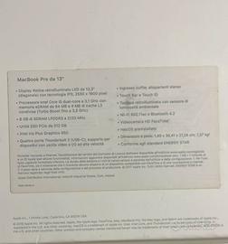 MacBook Pro 13, computer portatile usato in ottime condizioni, ha il Touch bar da sostituire che non compromette l’uso del computer. Carica batterie incluso.