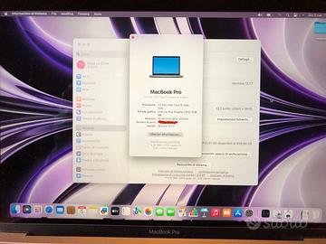 MacBook Pro 13 i5 512 SSD 16GB RAM con TouchBar digitale, perfetto, fine 2017, completo di alimentatore originale e cavo usb Type-C. BATTERIA CON SOLI 7 CICLI DI CARICA, TouchPad e tastiera perfetti, scocca e display senza alcun graffio. Presenti 4 porte usb Thunderbolt 3. Pc usato pochissimo e batteria mantenuta sempre al 50% in ottima efficienza. L’oggetto è perfetto in stato pari al nuovo ed è stato usato molto poco, infatti non presenta segni di usura e deformazioni o difetti. Vero affare garantisco. MacOS Ventura. Prezzo non trattabile. Disponibile solo spedizione, causa mancanza di tempo.