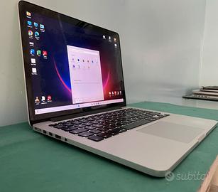 Apple MAcBook Pro Revisionato - Sistema operativo Windows11 o MacOS a scelta - Processore: i5 Memoria 8Gb Ram, disco SSD 512Gb - Scheda Grafica: intel iris 6100 1536Mb Vram - Schermo da 13"RETINA risoluz. 2560 x 1600 !!!! - Connettività : Wi-Fi-2 - Bluetooth 4.0 - Batteria ottima - Caricabatterie incluso - WebCam incorporata - Tastiera Italiana retroilluminata - TrackPad larghissimo - Porte: 2 Thunderbolt, 2 porte USB 3.0 ,HDMI - lettore memory card x smartphone - Altoparlanti stereo, uscita cuffie jack - Microfono interno omnidirezionale - Dimensioni : Altezza=1,8 cm(chiuso) , Larghezza=31, Profondità= 22cm - Peso: 1,5 kg GARANZIA -> 90gg