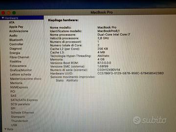 MacBook Pro 13 pollici del 2011, Processore Intel Core i7 a 2,8 GHz, memoria RAM 8 GB, disco interno SSD 1TB aggiornato con macOS Ventura versione 13,0 e Suite Office 365