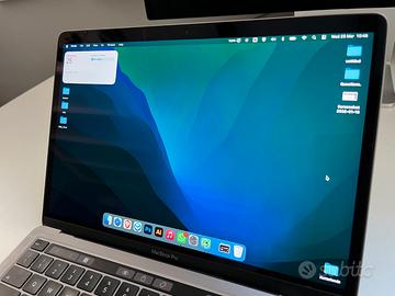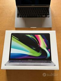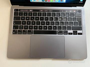 Vendo MacBook Pro 13” con TouchBar per passaggio a modello più potente. Perfettamente funzionante in ottime condizioni. Colore : Grigio siderale Processore: Apple Chip M1 Memoria unificata (RAM): 16GB Archiviazione: 256GB Stato batteria: Normale - 87% 2 uscite USB Type C 1 uscita audio Alcuni piccolissimi segni estetici da usura solo sulla scossa. Il computer è sempre stato tenuto in custodia protettiva anti urto e impermeabile.Vendo completo di caricabatterie originale, scatola originale e custodia.