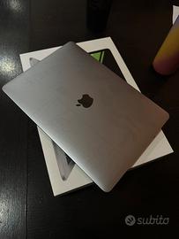 MacBook Pro 13” (2020) •Chip: Apple M1 •Memoria RAM: 8 GB •Archiviazione: SSD 512 GB •Display: Retina 13,3” (2560×1600) •Sistema operativo: Sonoma 14.1.1 •Colore: Grigio siderale •Tastiera: italiana Incluso •Scatola originale Apple •caricatore originale apple