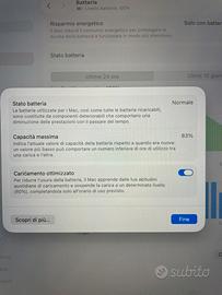 MacBook Pro 13” M1 (2021) – 512GB – Ottime condizioni Vendo MacBook Pro 13 pollici con chip M1 (anno 2021), dotato di Touch Bar, in condizioni estetiche eccellenti. 8 GB RAM 512 GB SSD Batteria in ottimo stato Utilizzato poco Nessun graffio o segno evidente di usura Il Mac è perfettamente funzionante in tutte le sue componenti. Unico difetto: alcuni tasti della tastiera fisica non funzionano (problema hardware). I tasti non funzionanti sono: “L” - “O” - “9” - “freccia destra” - “il punto”. Il dispositivo è comunque utilizzabile senza problemi con tastiera esterna oppure riparabile. Prezzo: 550€ Consegna a mano o spedizione da concordare. Contattami per qualsiasi informazione o ulteriori foto.